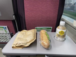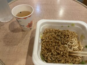フェリーに乗り込むとまずは船内の散策です。お風呂、売店、レストラン、甲板に出るところ、部屋以外でくつろげる窓際スペースやなんやかんやの位置を確認し乗ってすぐのお風呂の混雑が静まった頃に大浴場へ。夜食にやきそば弁当を買い、北海道限定を先取りしました。