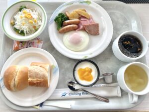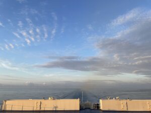帰路につく日。札幌から辿ってきた道を帰り、苫小牧で特急北斗を下車。降りる時間短すぎてほんまに焦りました。簡単に昼食を済ませ、使うか迷いに迷ったタクシーでフェリーターミナルへ。楽しかった記憶と帰らければならない寂しさ、2泊3日の船旅への期待など、いろんな感情が交錯して気づけば乗船時間に。やはりこの瞬間は本当にワクワクします。寝台は結構広く、収納スペースも充実。行きし同様に早速船内を探検です。売店、自販機コーナー、レストラン、甲板、休憩スペースetc…