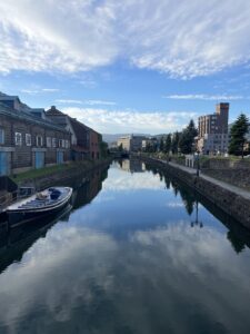 ボート部の性か、なんの予定もないのに5:00ごろに起床。空いているお店がなくて絶望。北海道に来たからには海鮮を食べたい!そう思って色々調べてみましたが、観光客価格のお店ばっかりでした。どうにか粘ってみると、ホテルから3kmくらい離れたところにお手頃な市場があったので、朝の冷涼な小樽を散歩。廃線路、朝の小樽運河、港を眺めながら到着。ロッカクという初見のお魚を焼いたものとマグロとタコとタイのお刺身、魚介出汁のきいたお味噌汁とふっくらご飯。北海道は白飯がおいしかった!!
