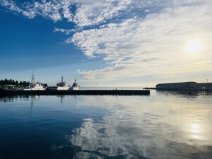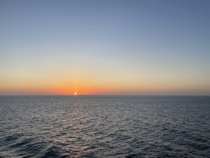 一日中船旅です。途中、仙台に寄港しましたが基本的にずっと船の上にいました。窓から海を眺めたり、お風呂から海を眺めたり、甲板から海を眺めたりしました。ずっと本を読んでいたら気づけば夜に。旅の〆として、少しお酒を飲みました。船内の灯と星と月しか光のない海の上で1人しっぽりと飲む時間はとても贅沢でした。