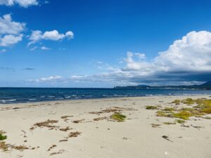 後ろ髪をひかれつつ、蒸留所から余市川へ。少し離れるともうそこは海。今まで見た中で1番綺麗な海でした。