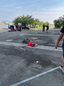 初めての水路作業でワクワクしつつ、主審艇の運転もさせてもらいました。緊張しましたがめちゃくちゃ楽しかったです。この時、浜寺にいった京大関係者が全員体調崩したのが衝撃すぎました。