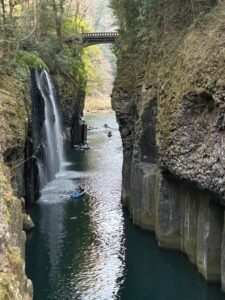 朝イチで厳かな雰囲気の上色見熊野座神社へ行った後、バスで高千穂へ。高千穂峡の壮大な景色からは、こんな地形が作られるのに何年かかるんだろうと思うと同時に、自分のちっぽけさや地球の偉大さを感じさせられます。