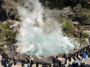 泊めてもらうだけの予定だったのですが、その友達もちょうど別府に行きたいと思っていたということで急遽一緒に行くことに。朝イチから人生初の泥湯を体験して、地獄蒸しプリンを食べ、海地獄に行き、別府の街に立ち昇る湯気を眺めました。泥湯は混浴エリアの作りが予想以上にオープンで、今時こんな所があるのかと少し驚きでした。