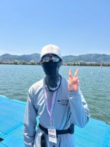 ほとんど毎日クルサポに来てくれるありがたいクルサポ。ボート部にすべてを捧げており、合宿所で見ない日はない。学連の仕事をとても頑張っている。琵琶周では車の運転などをしていただき、とてもお世話になった。将来偉い人になりそう。写真の通り、てらちーさん含む一部のスタッフは紫外線対策または防寒対策がすごく、本当に誰かわからない。