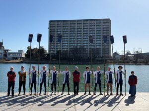 私たちは、このメンバーでお花見レガッタの男子8+に出場します。今シーズン初の対外試合であり、京都大学ボート部の男子エイトへの挑戦に向けた第一歩となります。クルー一同全力で挑むので、応援の程よろしくお願いいたします。