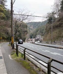 白川通に出てからはずっと西側の歩道を南下していましたが、丸太町通との交差点で東側の歩道に移ります。永観堂付近、海外からの観光客の方がバス停に複数。南禅寺と永観堂に訪れた帰りでしょうか。