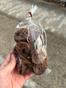 地下鉄の駅の入口でよく聞くピーンポーンという音で、御陵駅を通り過ぎようとしていることに気が付きます。御陵駅を通過して直ぐにベーカリーを発見。せっかく歩いてきたのだから一つくらいお店に入らないと損な気がして(?)、心惹かれたベーカリーでチョコラスクを購入しました。