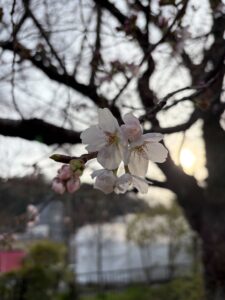 16:21に自宅から出発。農学部グラウンド、アメフト部の練習を横目に、白川疏水通を南下します。薄雲に遮られたやわらかな太陽の光と心地よい微風に、穏やかな気持ちになります。桜らしき花も少し咲いていました。